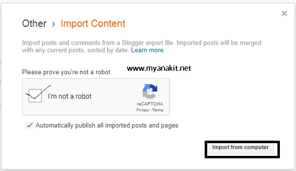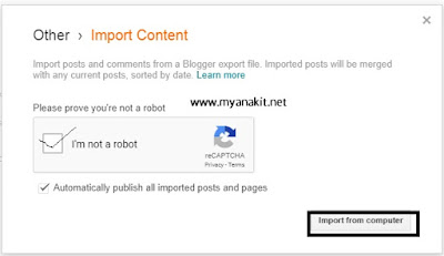 Pada jendela Import Content, silahkan centang kemanan Capctha. Biasanya kemanan ini hanya memastikan bahwa kita bukanlah robot. Secara otomatis Blog postingan yang telah import dari blog lama akan terpasang secara otomatis sesuai dengan artikel yang dibuat. Jika ada artikel yang tidak di inginkan, cobalah dihapus secara manual. Pada dasarnya dalam import export artikel blog secara otomatis memindahkan semuanya.